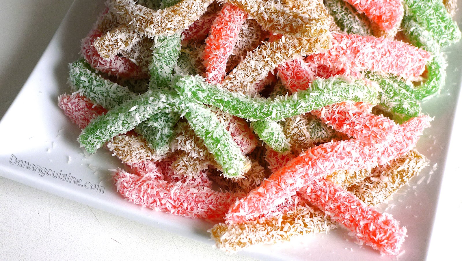 Let cool before cutting. Cut the cake into strips and roll them in the grated coconut.